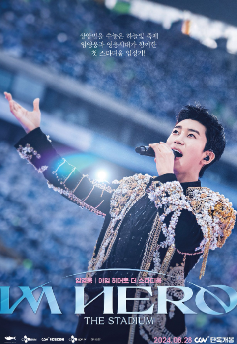 2024년 8월 28일, 임영웅의 콘서트 실황을 담은 영화 "아임 히어로 더 스타디움"이 CGV에서 개봉됩니다. 이 영화는 2024년 5월 서울 월드컵경기장에서 열린 공연을 생생하게 전달하며, IMAX와 ScreenX 같은 특별관에서도 상영됩니다.